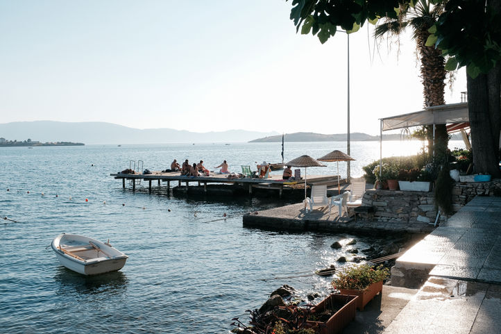If you would like to crack open the gates of history a bit, you should add Fatih Mosque dating back to the 15th century, and Beş Kapılar Castle on your list. And don't forget to visit the sirene rocks that you can get to with a boat, eat borovinka and mastic ice-cream from Nazmi Usta, watch the sunset over the sky that assumes a different color at every instant behind the castle landscape at the Kavala Café and go on a fishing tour with the boats departing from the harbor. You can call it a day at one of the restaurants lined side by side along the harbor or the tables of Fokai Restaurant set up on a narrow street and famous for its mezes.